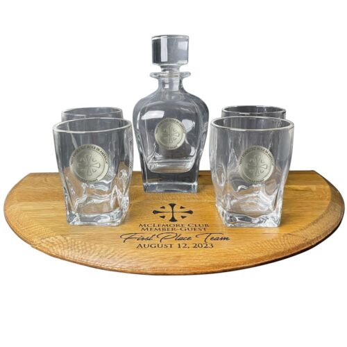 Wooden Box with Wine Bottle & 2 Stemless Wine Glasses