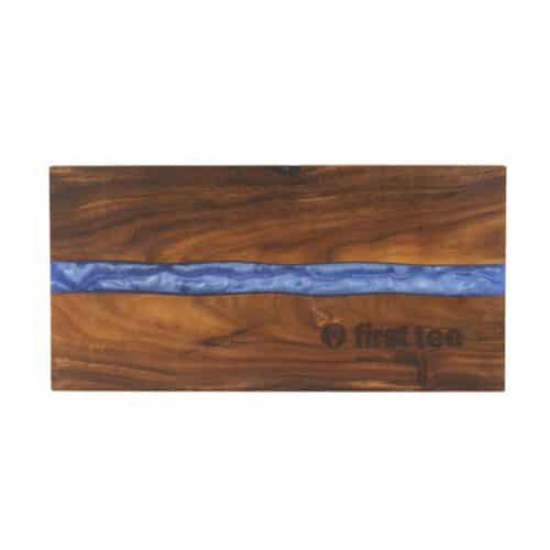 These resin serving boards are useful personalized gifts for any occasion that anyone would love, or for décor, these stunning serving boards are a perfect choice. The board is crafted of genuine Acacia wood accented by a stream of pearl white resin that flows through the natural grain of the wood. Naturally resistant to germs and moisture, they're an ideal choice for home or professional kitchens. Beautiful and durable enough to endure years of use. Hand wash only after each use with warm soapy water, rinse well and pat it dry. Do not allow it to soak in water. Treat with mineral oil or something similar to help preserve and protect. Comes in white pearl and blue pearl resin colors. Measures 18"x9".