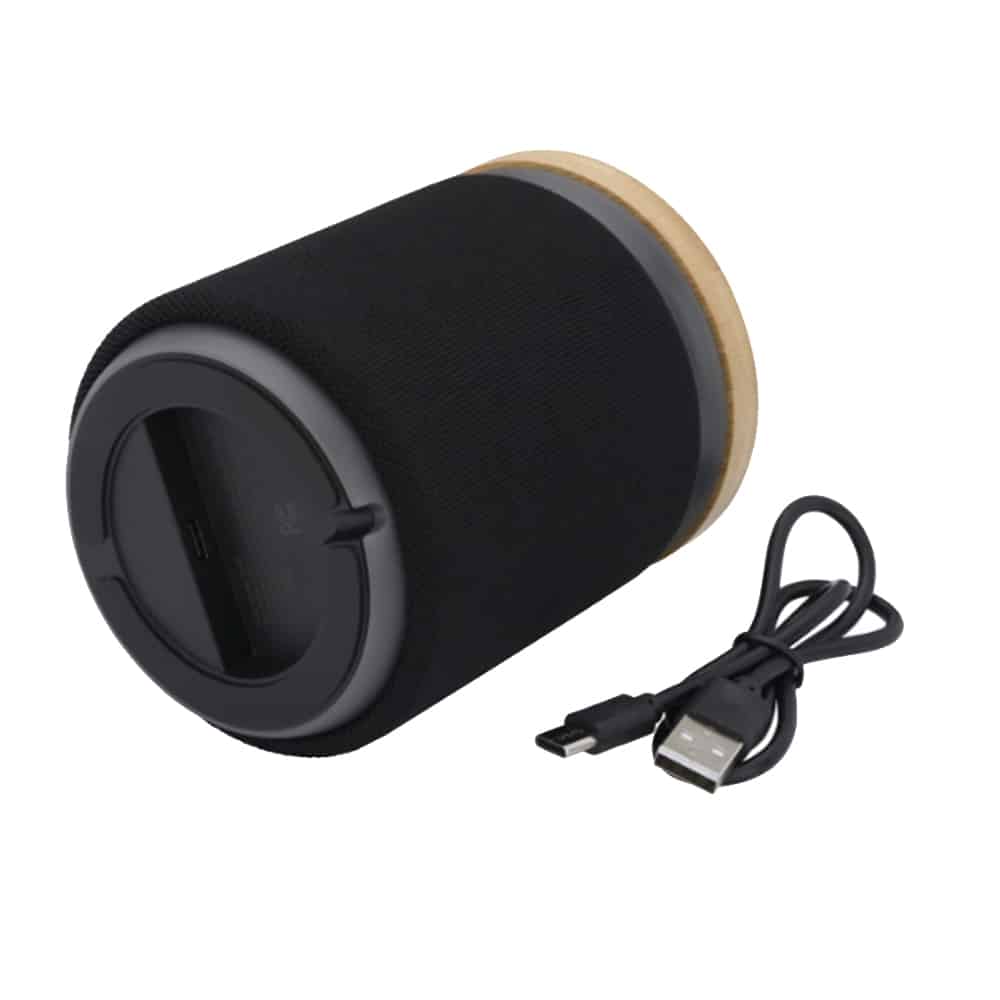 - LED indicator lights – Blue for power on & pairing; Red for speaker charging; Green for wireless device charging