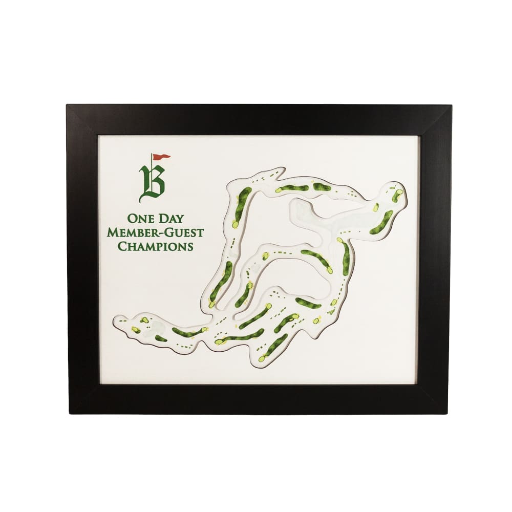A stunning, multi-dimensional award featuring an intricately cut top layer and a custom UV-printed course overhead beneath. Personalize it further with a floated logo or UV-printed text on the top layer. A truly unique and visually striking piece that makes an unforgettable award.
