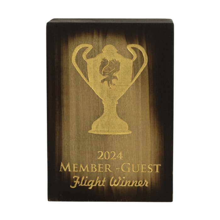 We have taken our Pillar award and have the burnt treatment applied and CNC engraving of your club’s logo to it as well. Logo and text can be color filled as an upgrade.