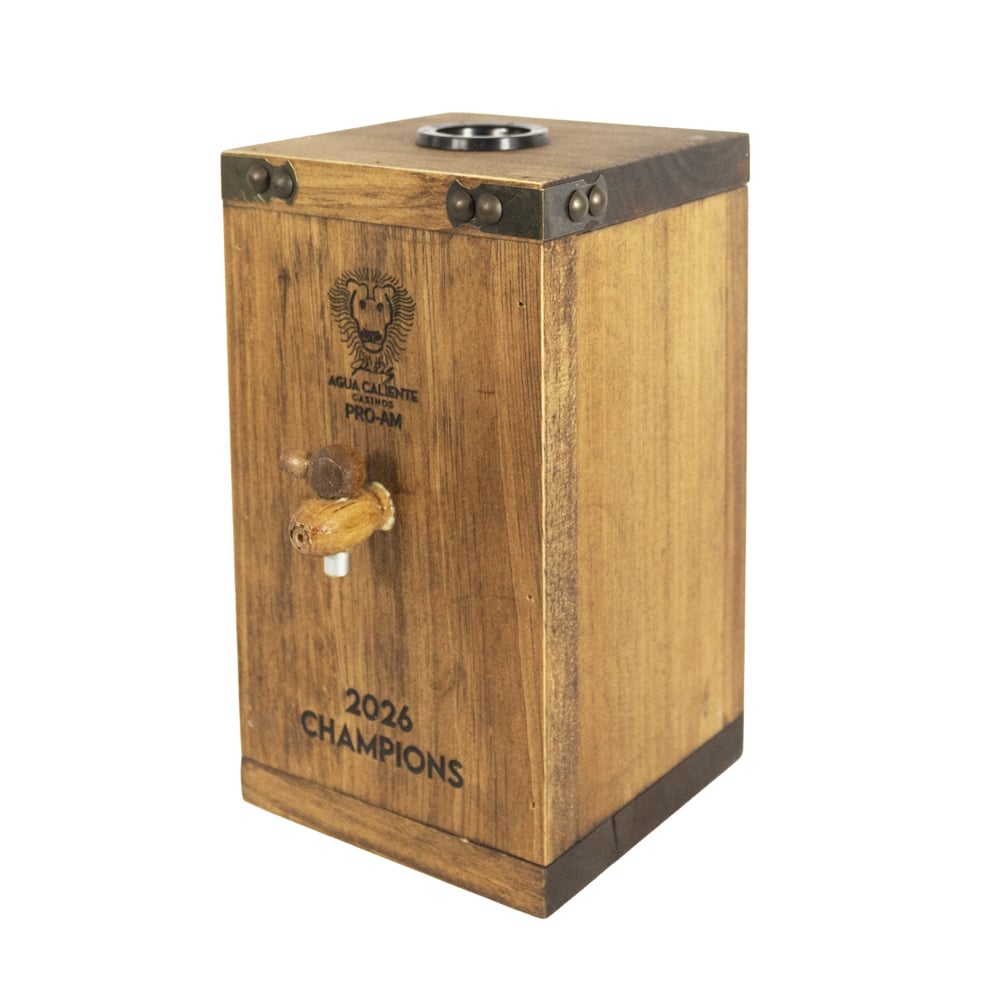 front corners • Heavy Solid Oak Construction • Made in USA • Custom lasered engraving • Secure, leak resistant, custom