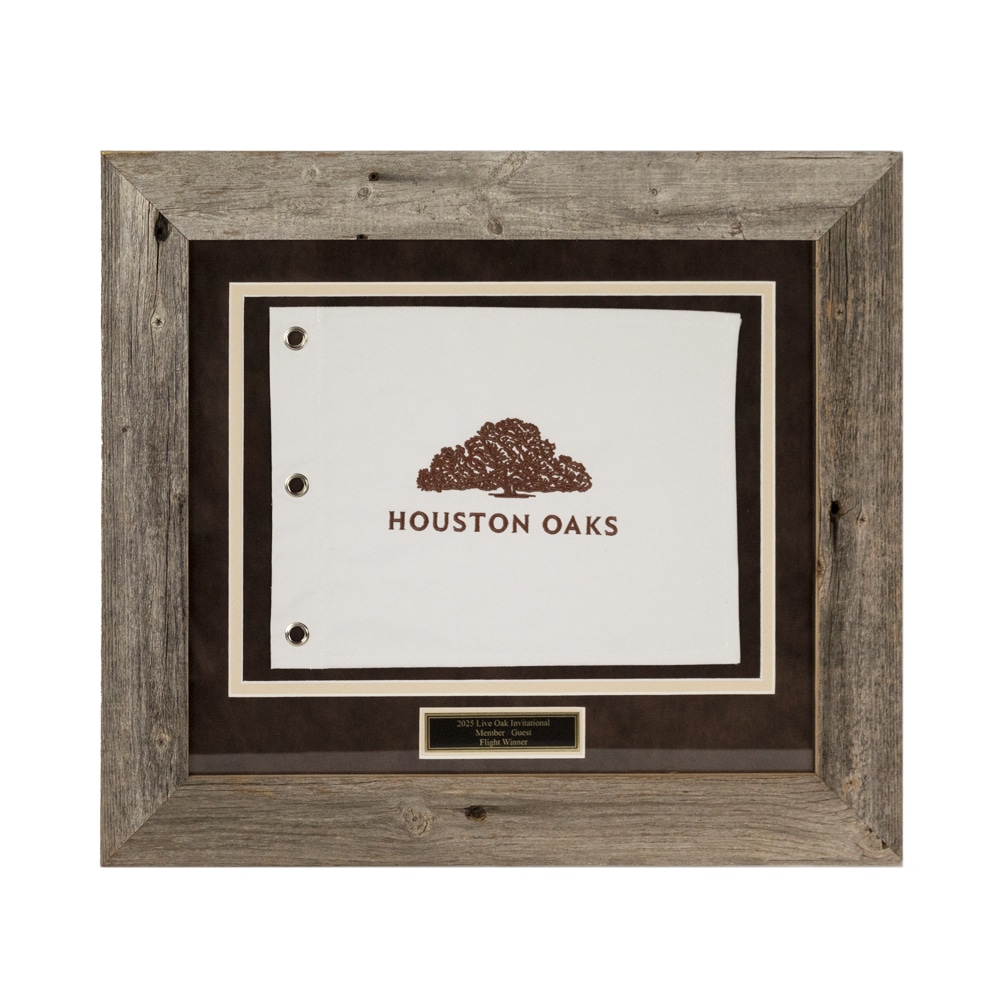 Framed embroidered flag provided by customer with standard matting and a 2″ frame.