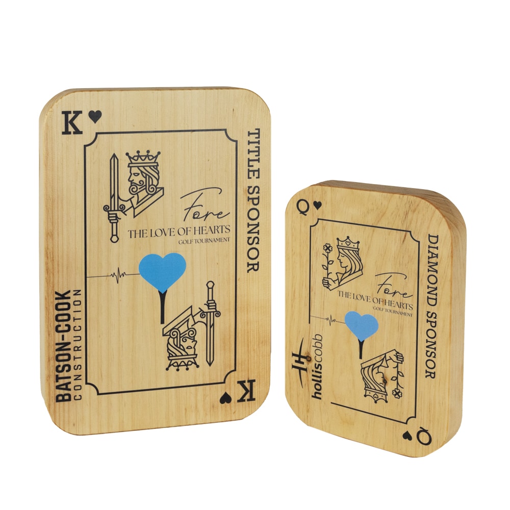 The Wooden Playing Card is a new item made from 1″ poplar wood. Dimension are 10.5″x15″. Also available in the King, Queen & Joker Card.